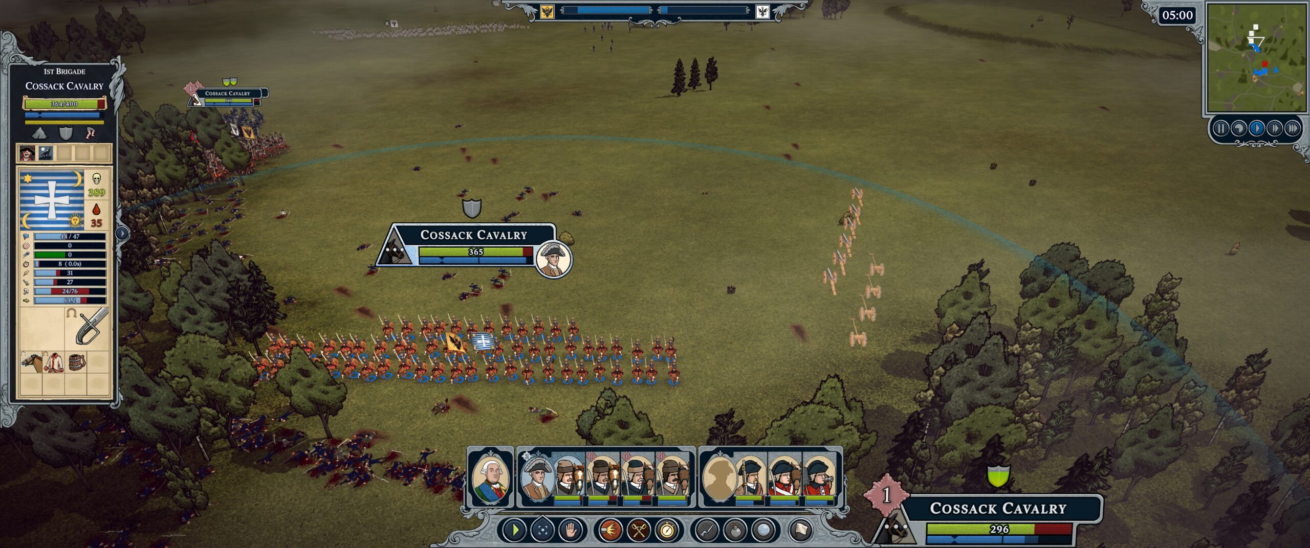 Some idle Cossacks ponder the Austrian cannons, now uncrewed, making their way back to friendly lines (it's a funny visual bug)