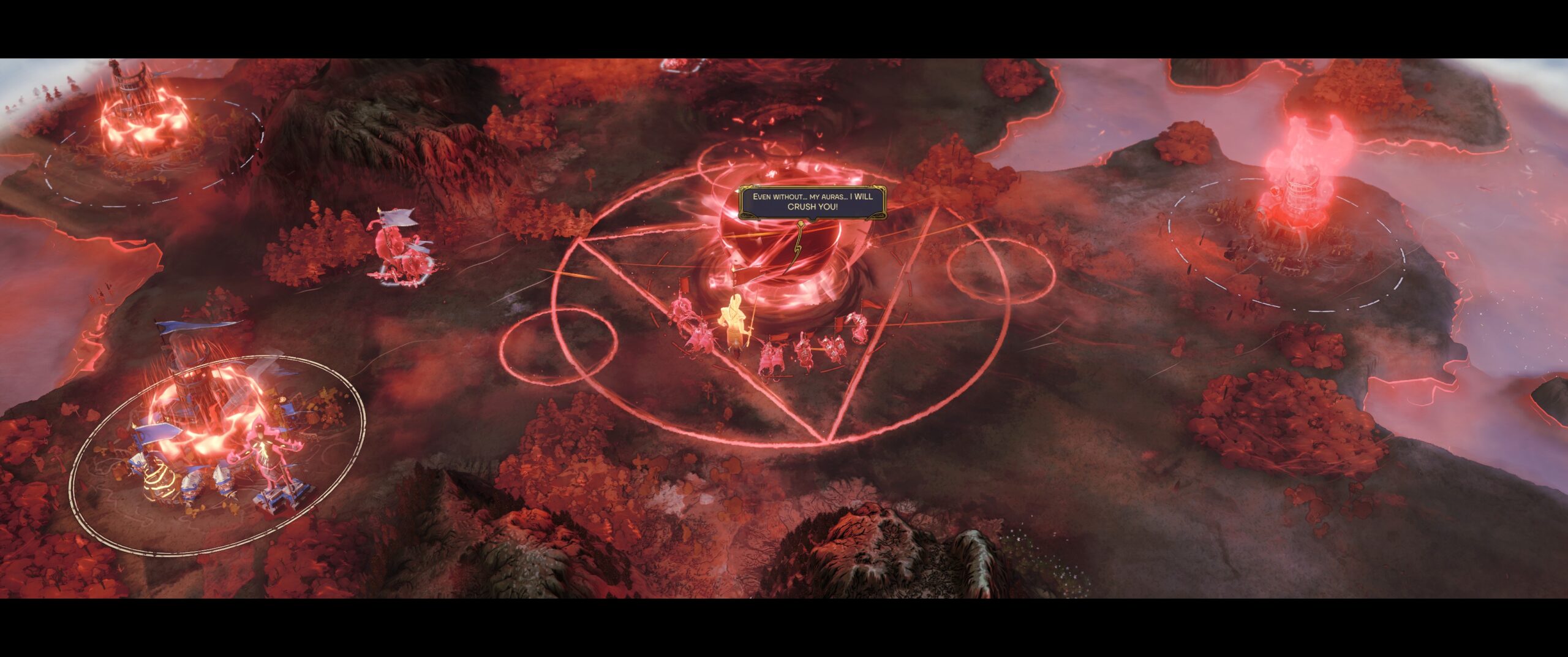 Songs of Silence screenshot: A red ball on the map is saying EVEN WITHOUT MY AURAS, I WILL CRUSH YOU